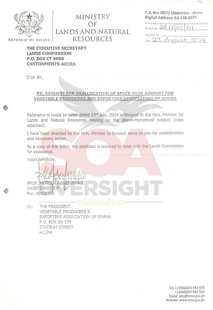 I particularly wish to urge the leadership of the Vegetable Producers and Exporters Association of Ghana not to accept the vicious and mindless last-minute attempts to relocate them to Amrahia.