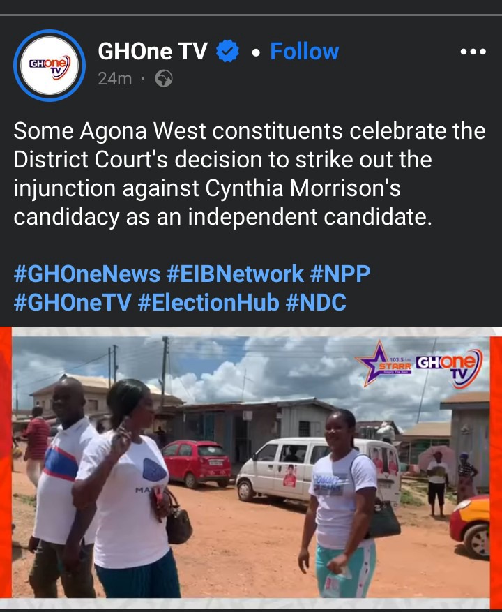 In a significant turn of events, constituents in Agona West are celebrating after the District Court’s decision to strike out the injunction that threatened Cynthia Morrison’s candidacy as an independent candidate. This ruling has sparked a wave of excitement among her supporters, who view this as a victory for democracy and fair representation.