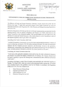 A total of four companies submitted bids before the March 31 deadline: Vortex Resources Mining Group, Engineers and Planners Ltd, Heath Goldfields Ltd, and Maripoma Mining Services Ltd. However, only E&P and Heath Goldfields met the mandatory documentation requirements. Vortex and Maripoma were disqualified for failing to submit the required documents.