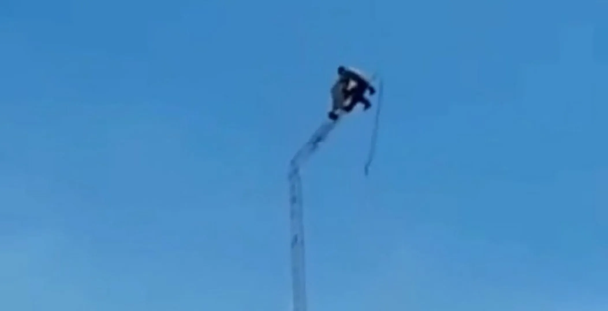The video shows the first part of the tower collapse, seemingly into thin air.