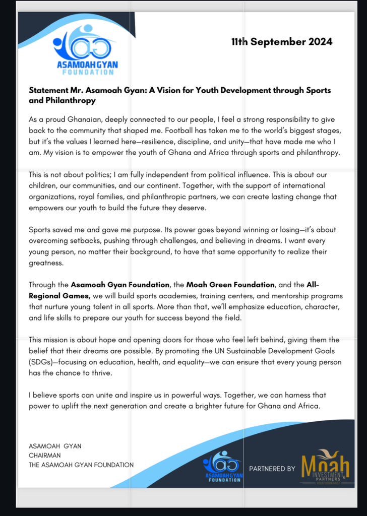 Thank you,” Gyan posted alongside the statemen on X.