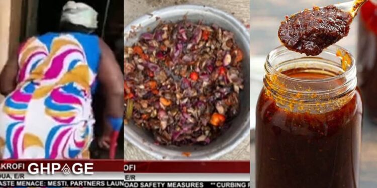 To their surprise, they discovered that Madam Arthur has been selling the waste products as shito to members of the public at a popular Kenkey joint in Kofofidua.