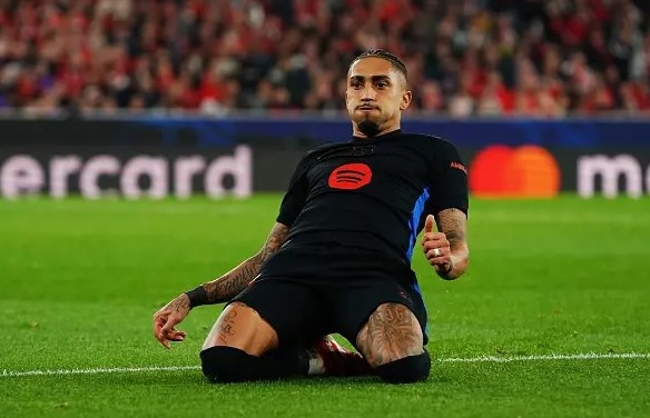 Raphinha celebrates goal against Benfica Photo Courtesy: Getty Images