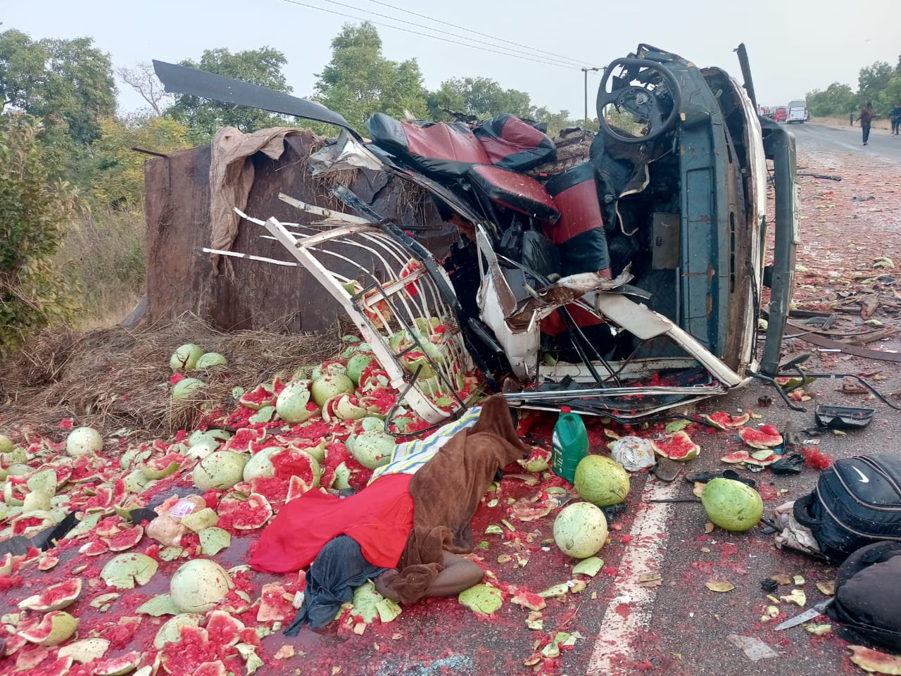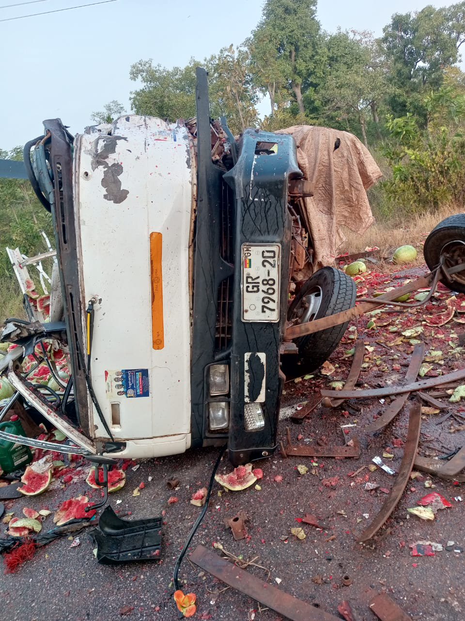 Upon reaching a section of the road at Mile 40, the bus collided head-on with the KIA Rhino, which was carrying watermelons from Daboya to Goaso.