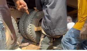 Personnel from the Ghana Fire Service and the Ghana Police Service had to cut through the tyres before the body was retrieved.