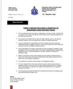 The Accra Regional Police Command has arrested three foreign nationals in connection with an alleged SIM box fraud operation at Sakumono in Accra.