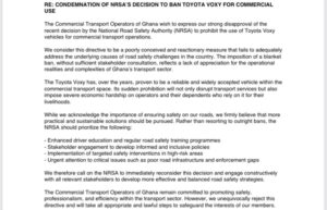 The Commercial Transport Operators of Ghana have strongly opposed the decision by the National Road Safety Authority (NRSA) to ban the use of Toyota Voxy vehicles for commercial transport, describing the move as ill-informed and reactionary.