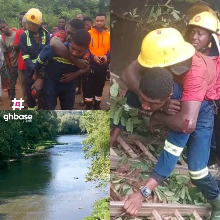 The truck’s mate was trapped in the wreckage but was swiftly rescued by the Techiman Metro Fire Station team. After being freed, the injured mate was handed over to the National Ambulance Service for medical treatment. Fortunately, no fatalities were reported, though the incident caused a temporary disruption on the busy highway. Emergency responders worked to salvage some of the cement bags, but a substantial portion was lost in the river.