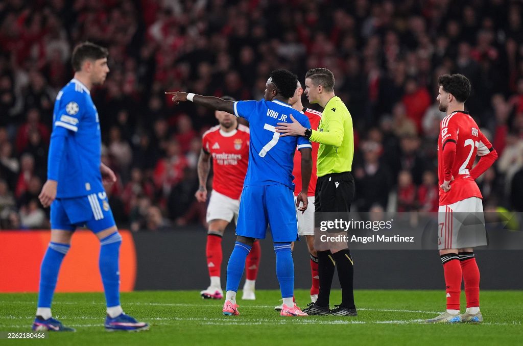 José Mourinho, the Benfica head coach, said: “I spoke to Álvaro [during the stoppage] before I understood what the problem was, just to say: ‘This guy scores a goal that’s out of this world, why does he being stupid in the corner?.’ Then later when I realise, [and] it seems Vinícius doesn’t want to play, we were talking about [whether] we play again. I want to try to be more balanced than Arbeloa and Mbappé. I do not want to say that Vinícius is a liar and nor do I want to say that my player is an incredible boy. They have decided to go their way, their perspective; I don’t want to go there. I said to Vinícius [at first]: you scored a goal that was out of this world, why do you celebrate like this? Why not celebrate like Di Stéfano, Pelé, Eusébio, just with the happiness of being a player from another world?”