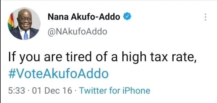 “Vote For Me If You Are Tired Of High Tax Rate”-Akufo Addo’s Old Campaign Tweet Pops Up